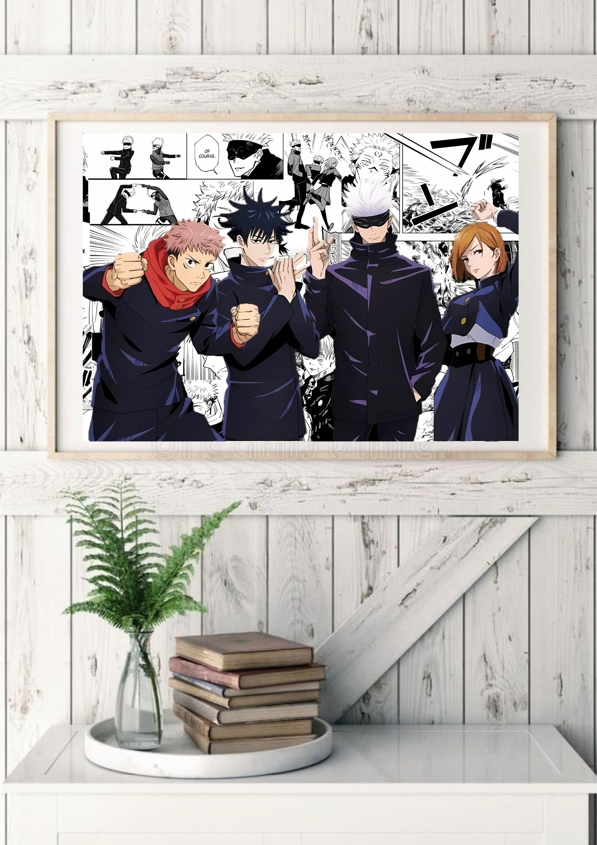Gojo,Yuji,Fushiguro & Nobara poster || jujutsu kaisen poster